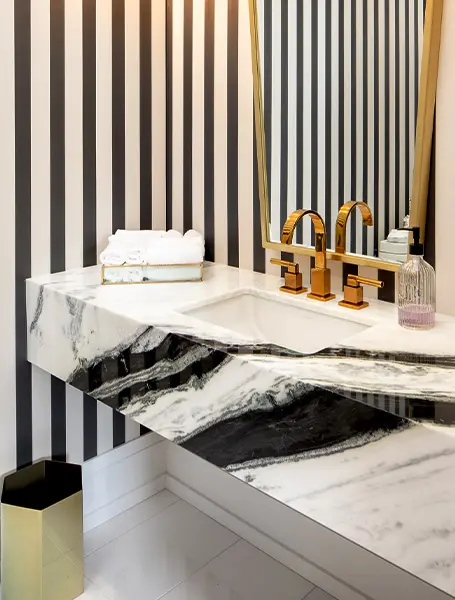 Marble is renowned for its natural elegance, characterized by a captivating depth and the unique patina it acquires over time, reflecting the life and history of the home it graces. However, it’s important to note that marble is highly porous, making it susceptible to etching and staining. Therefore, it may not be the ideal choice for families who frequently engage in baking and cooking activities.